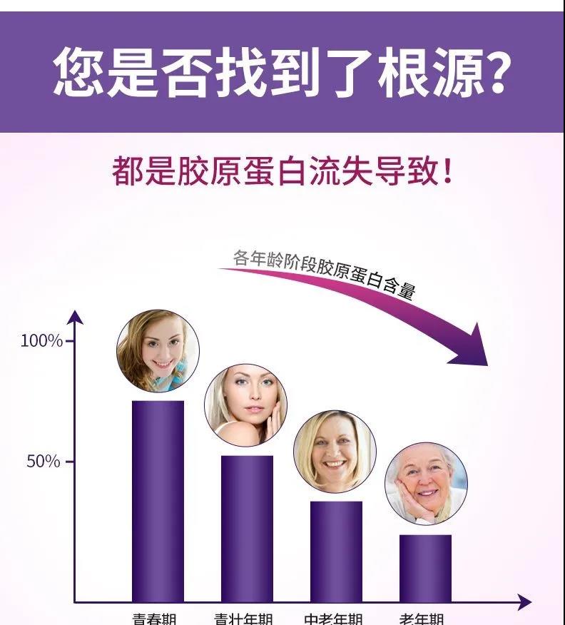 膠原蛋白充足,人體才能保持年輕健康的狀態。反之,膠原蛋白不足時,不僅皮膚及骨骼會出現問題,對內臟器官也會產生不利影響,引起多重危害,例如女性朋友們出現皮膚松弛,暗淡發黃、毛孔粗大、頭發干枯毛躁,胸部下垂外擴,臀部扁平、月經失調、關節疼痛....等各種身體不適問題。